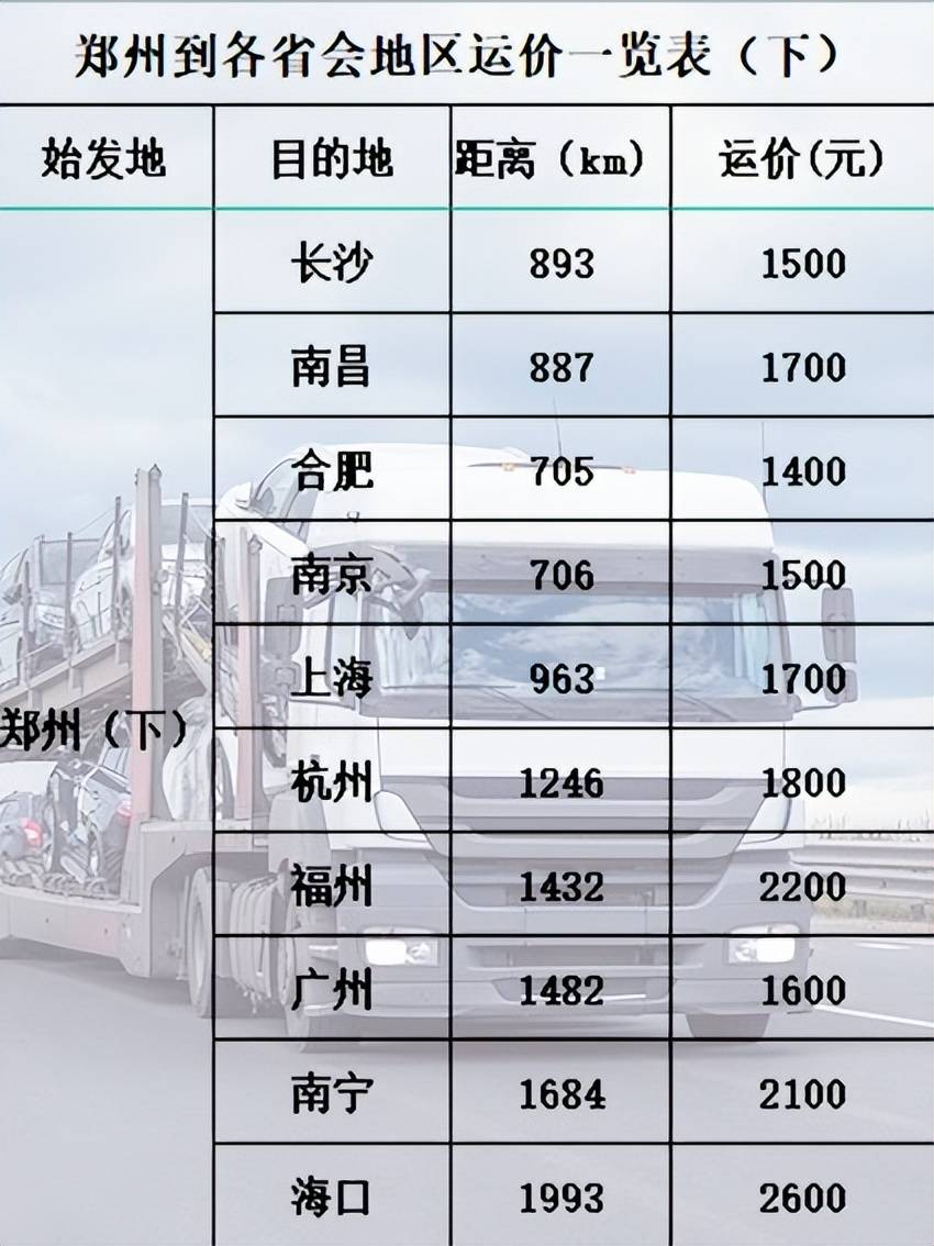 鄭州到全國省會城市(除港澳臺外)所有運價已全部匯總出來啦!